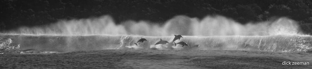 We cruise along the coastline anyway hoping to spot some action. And we do: soon we find a pod of bottlenose dolphins and we get the chance to snorkel with them as well as watch them jump the waves as they break. On the way back we head away from the land and get lucky again. We spot the humpback whales we have been hearing while snorkeling! Heading towards the spray we encounter 5 or 6 whales. Though we try to snorkel with them we can’t see them under water. Above water they make an amazing sight however, and an amazing end to the first day at sea.